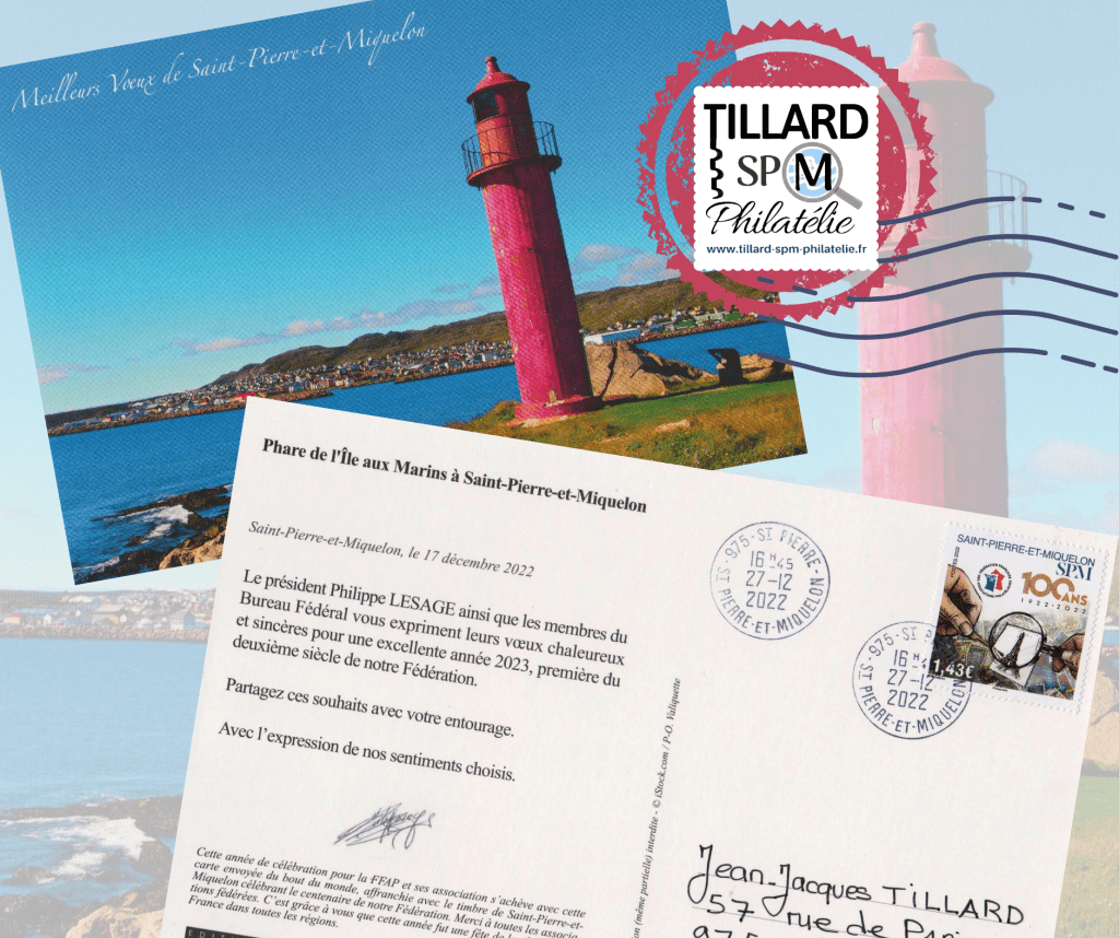 Heureuse de constater cette émission, la FFAP a décidé d’adresser ses vœux à ses centaines de membres en affranchissant ses cartes de souhaits avec ce timbre au départ de SPM.