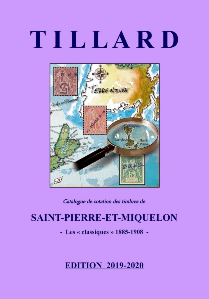 Catalogue de Cotation des Timbres de Saint-Pierre et Miquelon, Édition 2024-2026. En précommande, sortie en avril-mai 2024 28€ port compris.Catalogue de Cotation des Timbres de Saint-Pierre et Miquelon, Édition 2021-2023. 16€ port compris.Catalogue de Cotation des Timbres de Saint-Pierre et Miquelon, Édition 2019-2020. 16€ port compris.Catalogue de Cotation des Timbres de Saint-Pierre et Miquelon, Édition 2017-2018. 16€ port compris.Saint-Pierre et Miquelon, Les Réalisations d’Amédée Bréhier. 36€ port compris.Saint-Pierre et Miquelon, Les Clichés d’Alfred Briand. 36€ port compris.Saint-Pierre et Miquelon, Une Philatélie d’Exception, 2011 (300 pages). 44€ port compris.Les Raretés de Saint-Pierre et Miquelon, Timbres et Entiers Postaux. 36€ port compris.Saint-Pierre et Miquelon, Ses Surcharges au 19ème siècle. Edition luxe avec dorure sur tranche. 46€ port compris.Épreuves, Essais de Saint-Pierre et Miquelon, 1999. 16€ port compris.La France Libre dans la Philatélie de Saint-Pierre et Miquelon, 2002 (bilingue). 26€ port compris.Saint-Pierre et Miquelon : un Regard. (Bilingue) Ouvrage mettant en valeur des beaux clichés de SPM correspondant aux timbres contemporains. 18€ port compris.